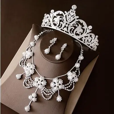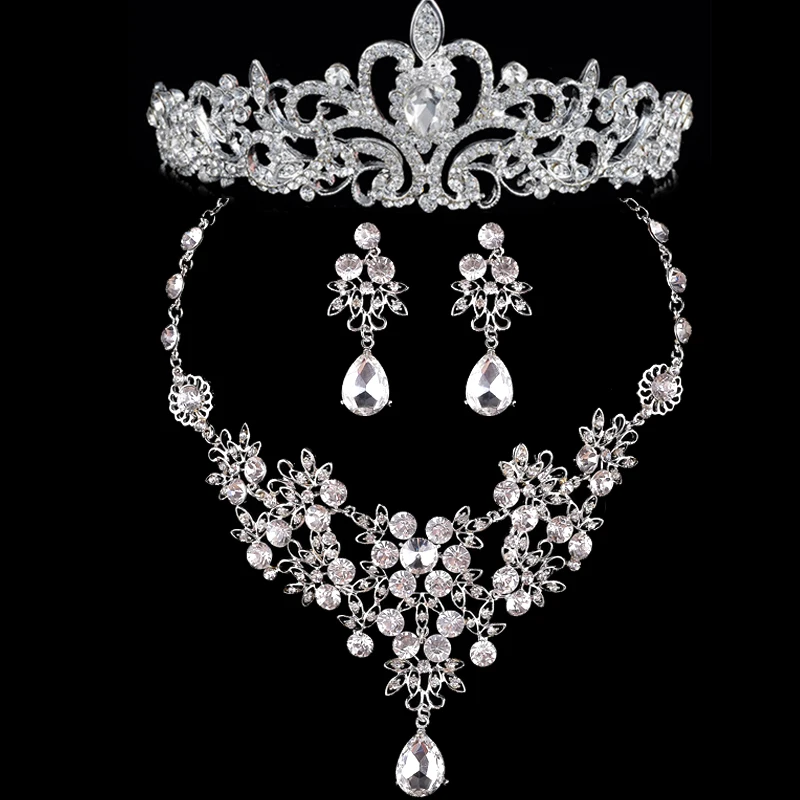 Noble Crystal Bridal Jewelry Sets Silver Fashion Wedding Jewelry Tiara Necklace Earrings for Brides Bridesmaids