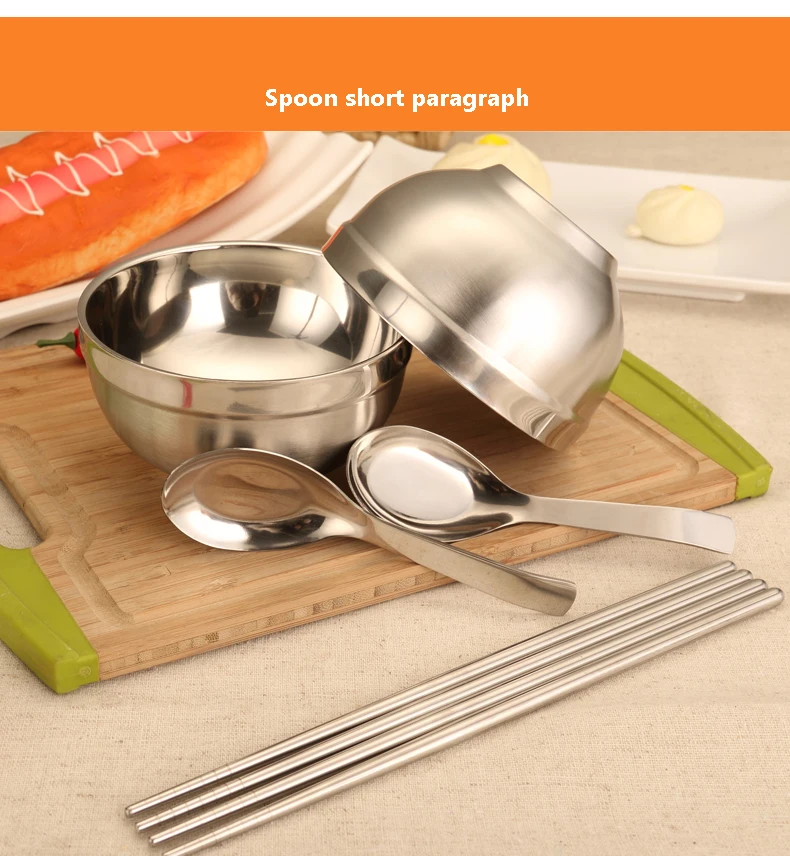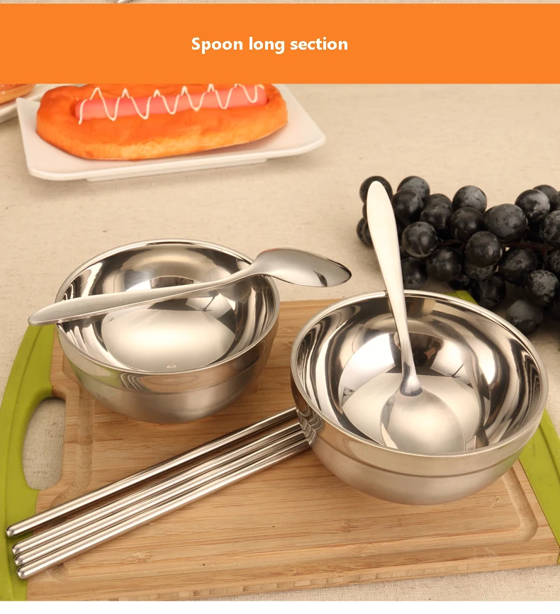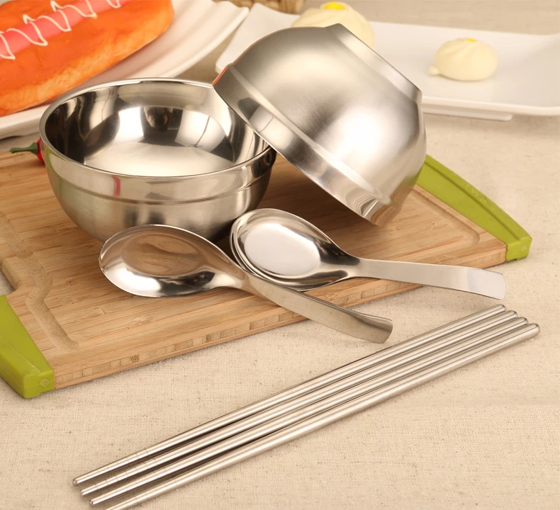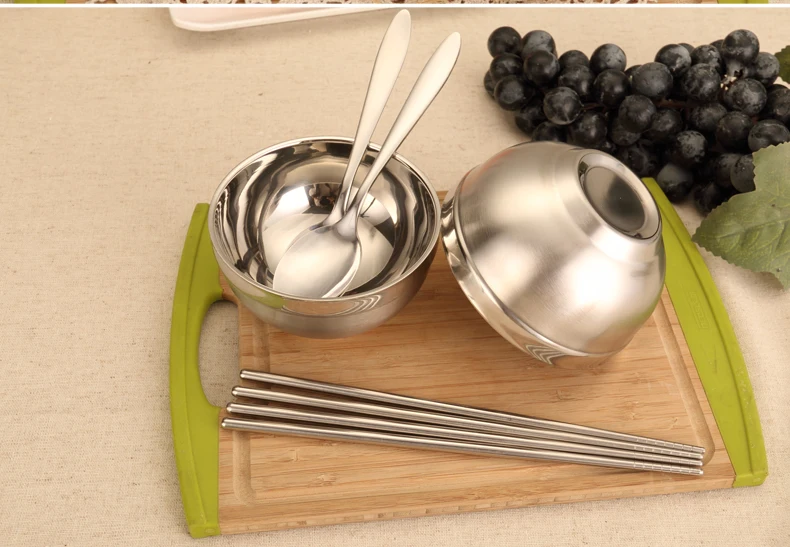 The set consists of two pairs of chopsticks, two spoons, two bowls, and a bag.